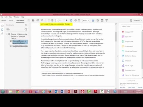 This video shows how to create an accessible PDF document from Word 2013 for Windows. Particular attention is paid to creating a proper heading structure.